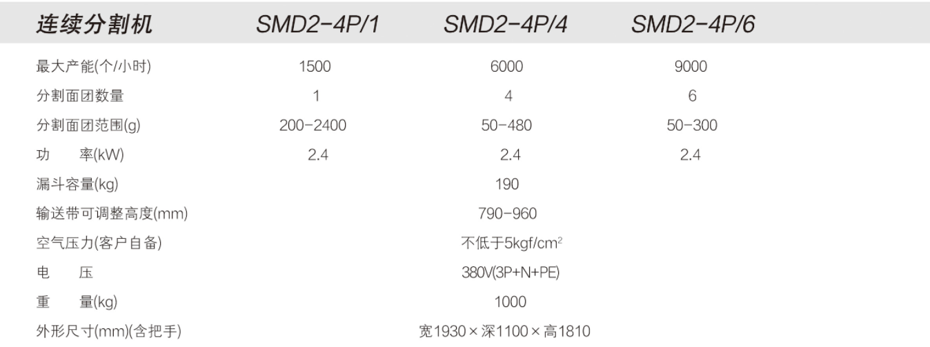連續(xù)分割機(jī),對(duì)攪拌后的面團(tuán)進(jìn)行連續(xù)分割: (1) 適用于面團(tuán)水分55% ~ 68%之產(chǎn)品的分割。 (2) 須清潔部位拆卸簡(jiǎn)易,清理方便。 (3) 分割重量誤差 ±3%